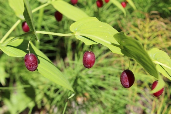 Physical Characteristics: Grows to 3 feet high at maturity, stems have a distinctive twist. Leaves have parallel veins/ Flowers are greenish-white, bell-like with petals that curve back. Berries are red and juicy, with many seeds.